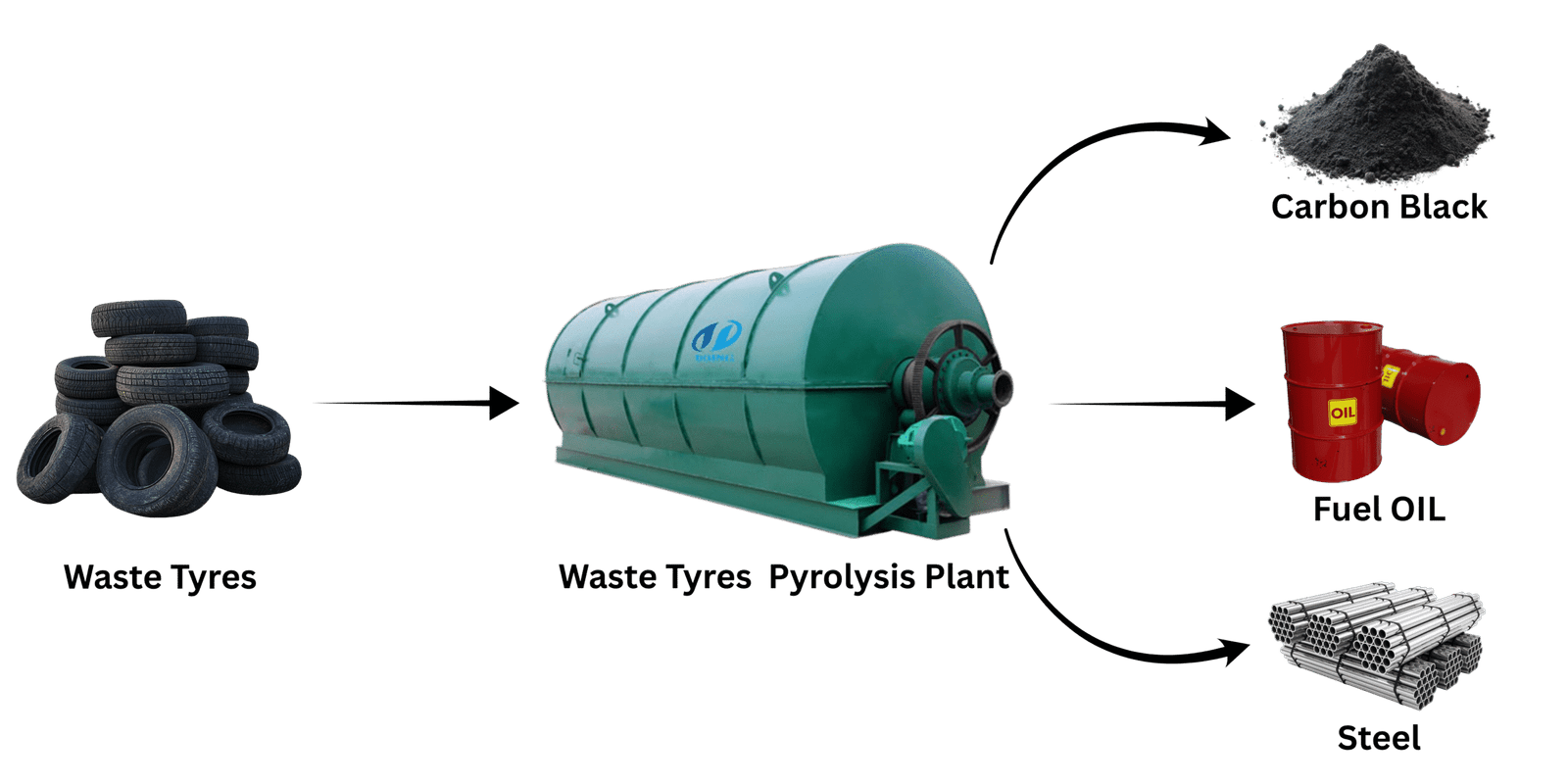 Learn about our advanced pyrolysis process that converts waste tyres into renewable fuel, carbon char, and recycled steel in three efficient stages.